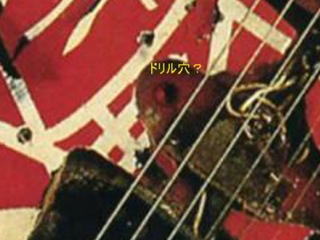 | 穴を空けた理由については解明することができていないが、レプリカ作成において この○をどうやってリアルに再現するかについてはひとつの結論に至った。 果たしてエディが多少の穴で補修をするのか? そうは思ったが、この穴はどうみてもφ6mmはあると思う。他にもコインのセンター穴を埋めた というインタビューも残っているので、意外とマメな面があるかもしれない。 ビス穴程度には無頓着なエディでもある「線」を超えた時点でちゃんと補修する様だ。 多分その「線」はφ3〜4mmあたりにあると推測する。 |