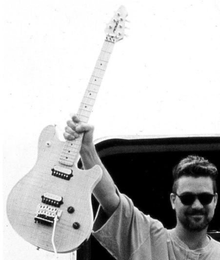 ベースとなるギターは、 Peavey EVH Wolfgang 97グロスブラック ■BODY : Basswood ■NECK : Birdseye maple ■FINGERBOARD : Birdseye maple ■FRETS : 22, ■SCALE LENGTH : 25.5” ■HARDWARE : Chrome ■TUNING KEYS : Schaller M6-mini ■BRIDGE : Peavey Floyd Rose Lisenced w/D-Tuna ■PICKUPS : Peavey Wolfgang Original HB ×2 ■PICKUP SWITCHING : 3-way switch ■CONTROLS : 1vol 1tone ■Coller : Gloss Black ベース機はこのプロジェクトの為に EVHホッシーノさんがオクでポチったもので、シリアルは初期型の300番台。 エディが飛行機で高々と掲げるプリプロは軽くトラ目が入っているが、この個体はバスウッド3Pボディ。 トラスロッド調整がヘッド側だったり、トラのアーチトップを犠牲にするのはちょっと・・・ と言うところもあり、妥協点は残る。が、ランドマークを踏む欲望を満たすには充分だと思う。 @リヤPU近くに補修跡あり→実は悲惨な素人補修だった・・・ ATONEつまみがすっぽ抜ける→シャフト曲がりが原因 Bアームの動きが悪い→調整範囲 があった為にお安く落札できたとの事。 |